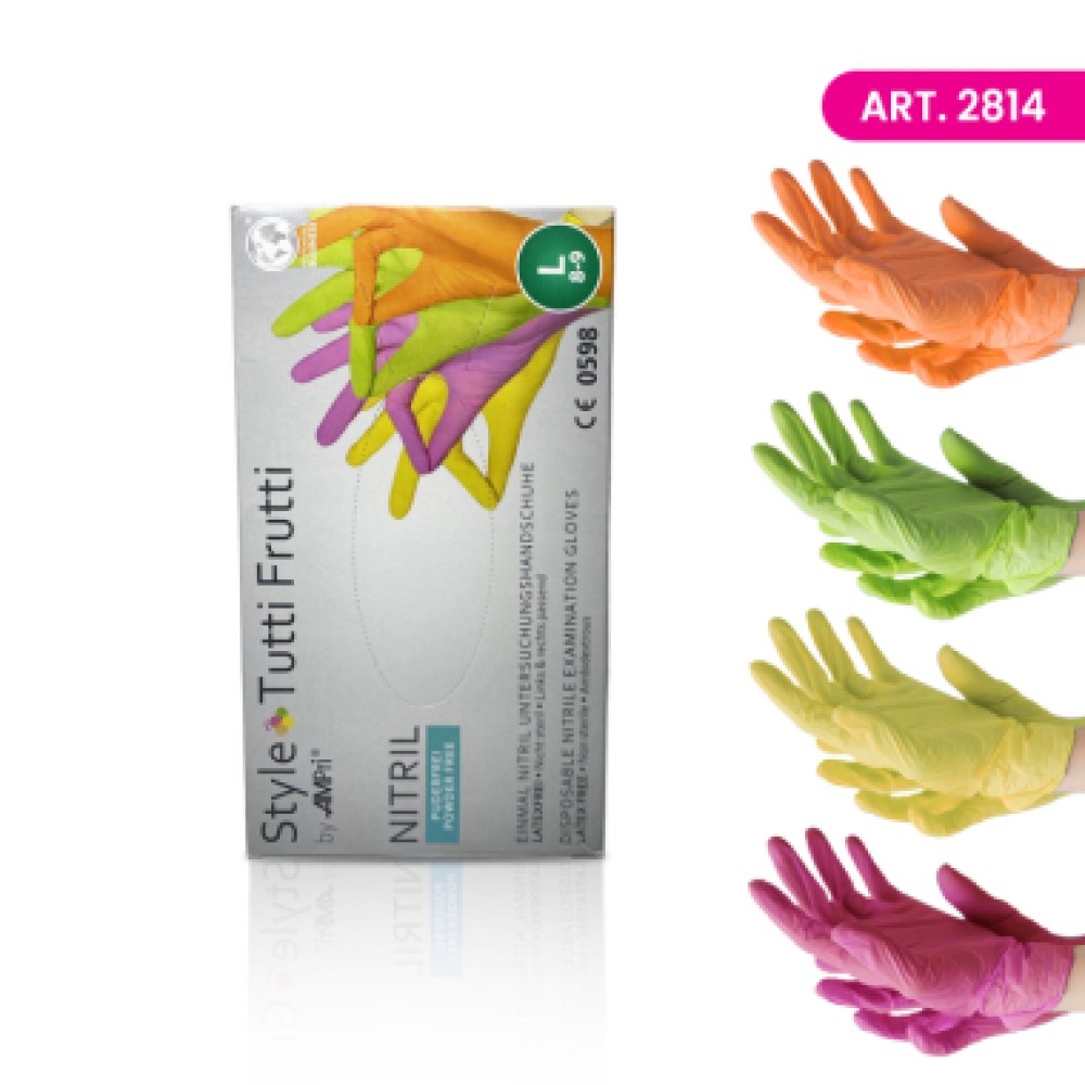 Rukavice hiruške nitril MIX veličina L. Bez pudera. 4 razlicite boje: PINK, ZELENA, NARANDŽASTA I ŽUTA. 96 komada u pakovanju.