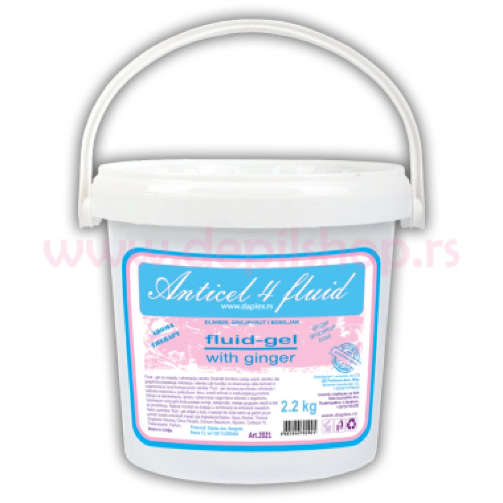Anticelulit fluid gel 4 sa đumbirom, grejpfrutom i bosiljkom u kombinaciji sa uljem eliminiše celulit i masne naslage. Aktivira mikrocirkulaciju, hidrira i zateže kožu. Odličan za kožu i profesionalan rad, daje extra rezultate. Gel utrljati u kožu i masirati. Može se kombinovati sa masaž uljem. Pakovanje 2,2kg.