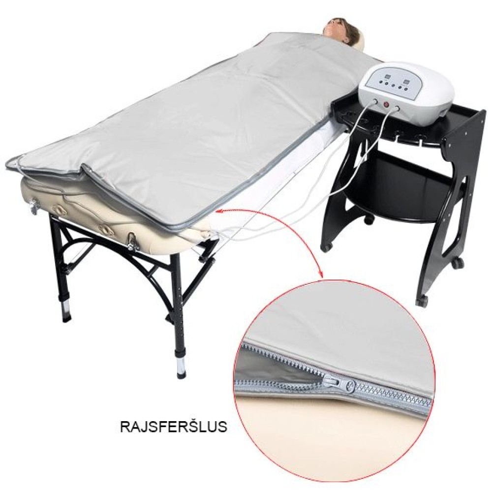 Termo ćebe za tretmane tela dizajnirano za toplotno delovanje na kožu i tkiva kod klijenta. Konstrukcija aparata sastoji se od naprednih grejača, koji deluju na uklanjanje celulita, masnih naslaga, smanjenje telesne mase, detoksikaciju, jačanje imuniteta, poboljšanje teksture kože, umanjenje nivoa stresa i bolova. Primenjuje se i kao tretman sa efektom saune. Sastoji se od kompozitnih materijala koji se lako održavaju, poseduje rajsferšlus celim obimom i sadrži otvor za glavu.